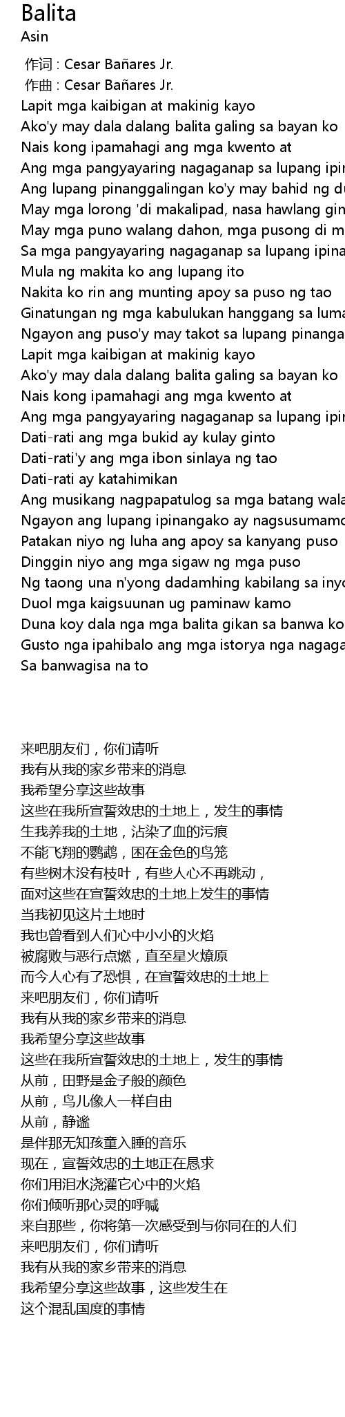 | [00:00.000] | 作词 : Cesar Bañares Jr. |