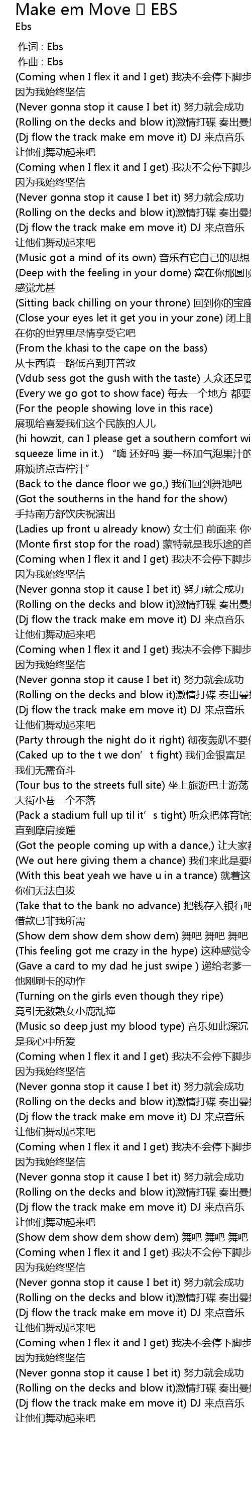 | Song | Make em Move EBS |