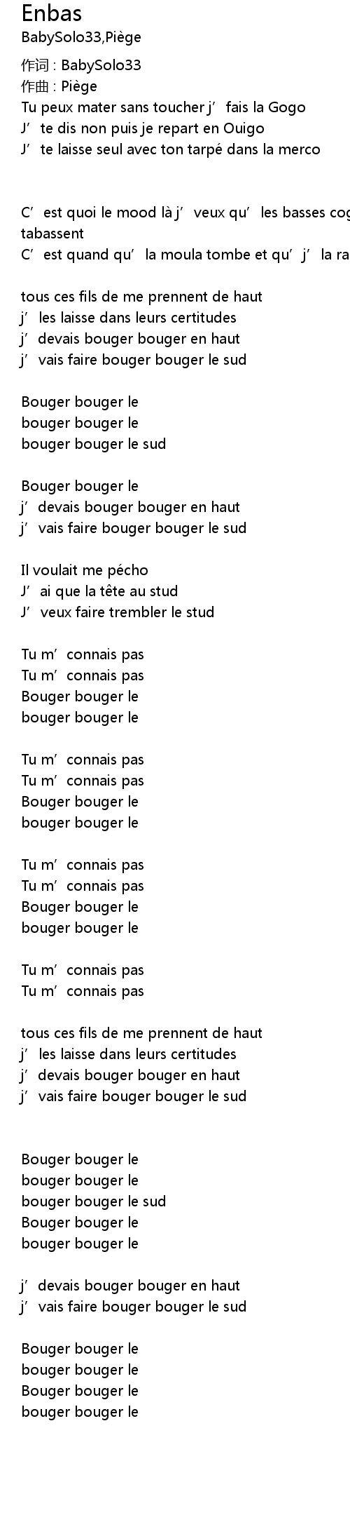| C' est quoi le mood la j' veux qu' les basses cognent que les basses tabassent | |