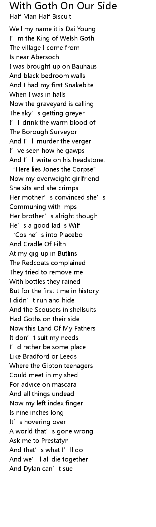 | Song | With Goth On Our Side |