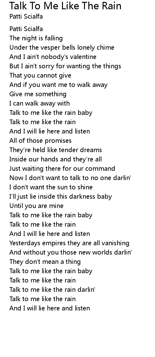 Talk to me like the rain baby |