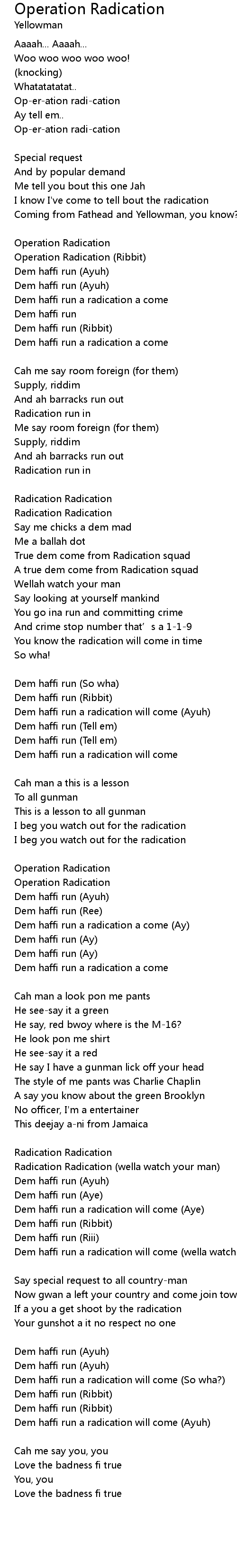 | Dem haffi run a radication will come (So wha?) | |