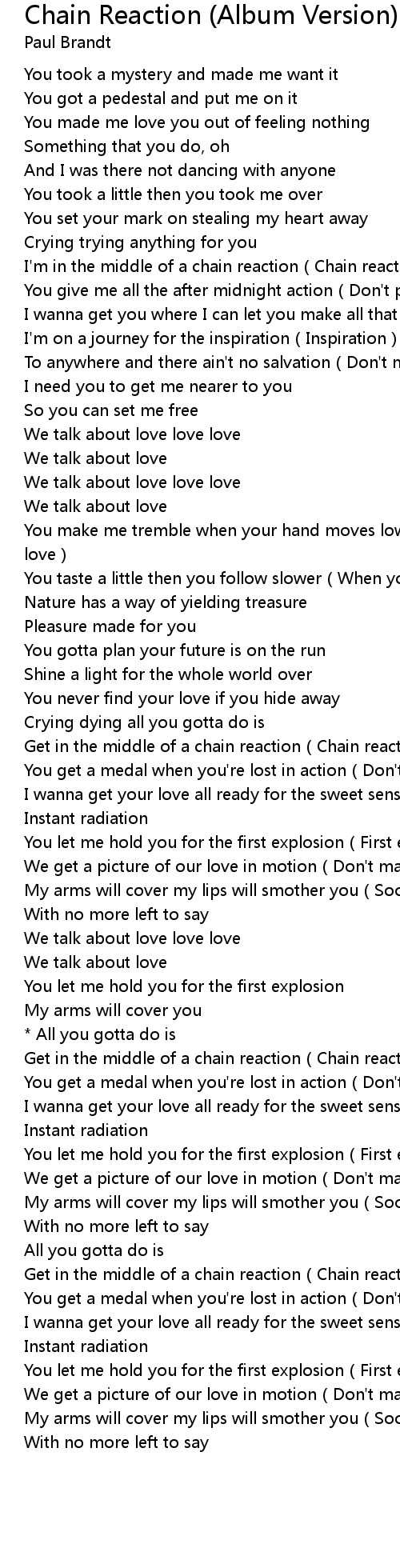 | [03:24.83] | Get in the middle of a chain reaction Chain reaction |