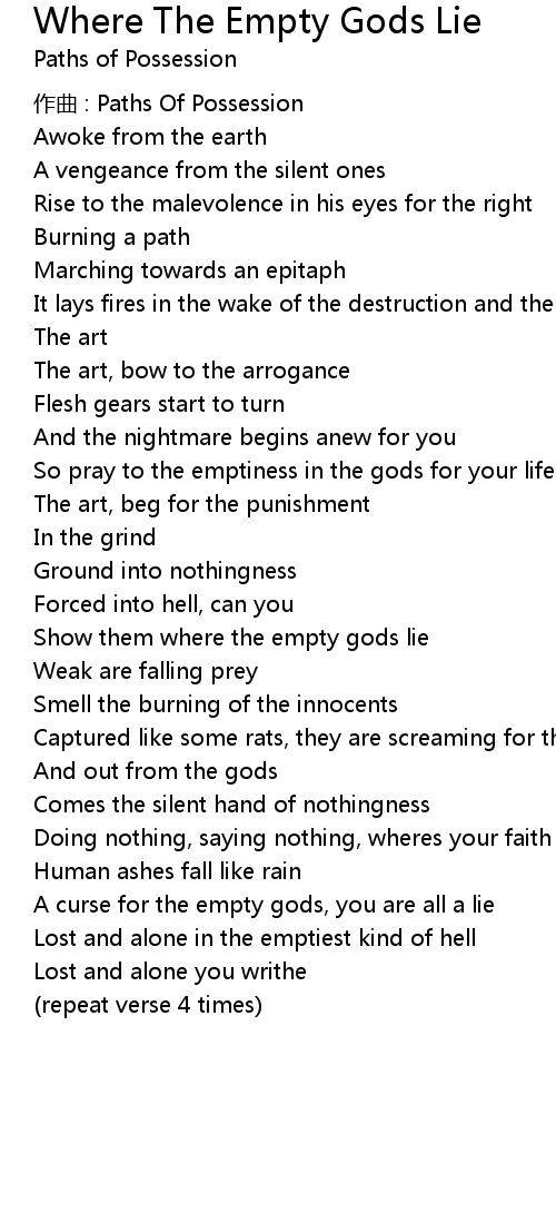 | Song | Where The Empty Gods Lie |