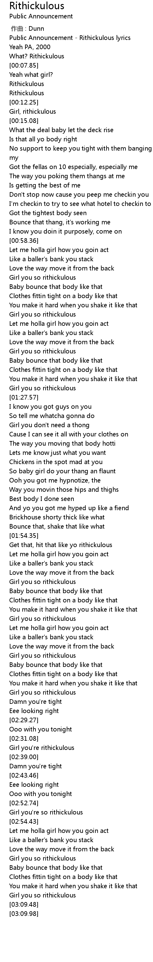 | [03:00.57] | Girl you so rithickulous |