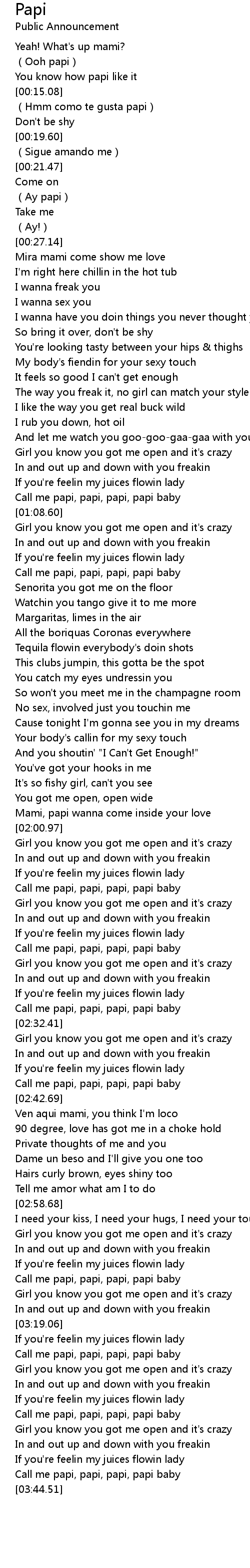 | [03:22.33] | Call me papi, papi, papi, papi baby |