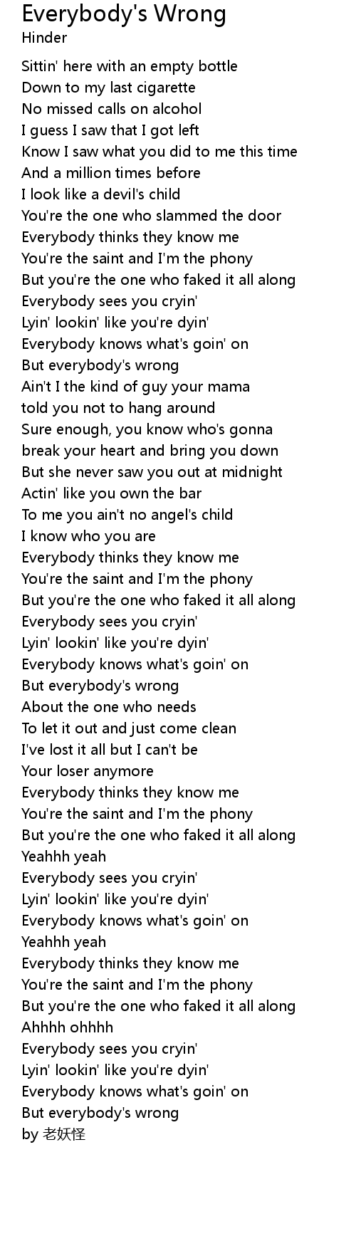 | [00:55.63] | But everybody' s wrong |