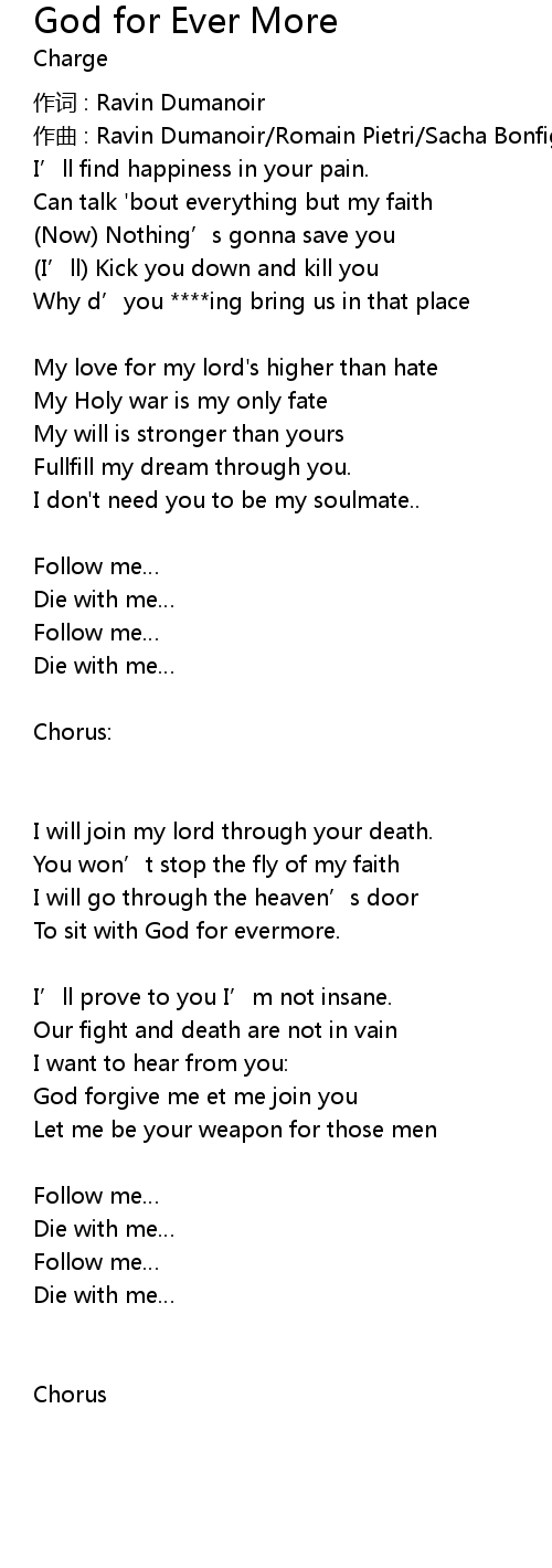 | Song | God for Ever More |