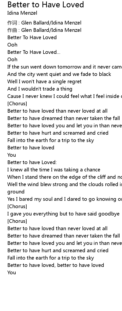 | Better to have loved, better to have loved | |