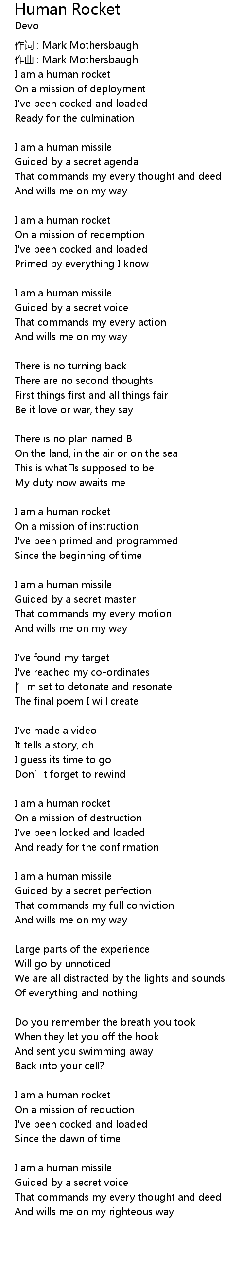 | 作词 : Mark Mothersbaugh | |