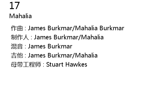 | [00:00.000] | 制作人 : James Burkmar/Mahalia |