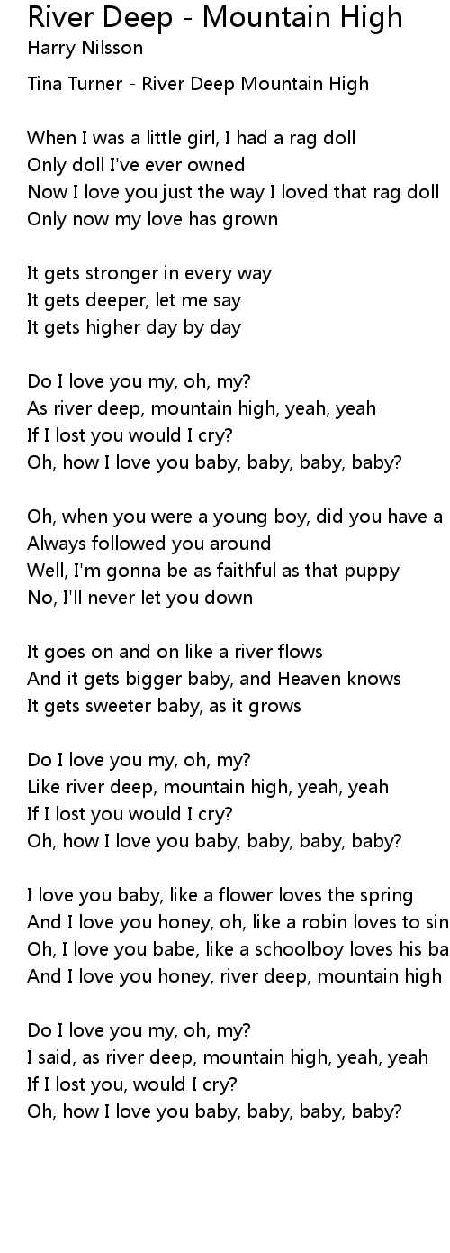 And I love you honey, river deep, mountain high |