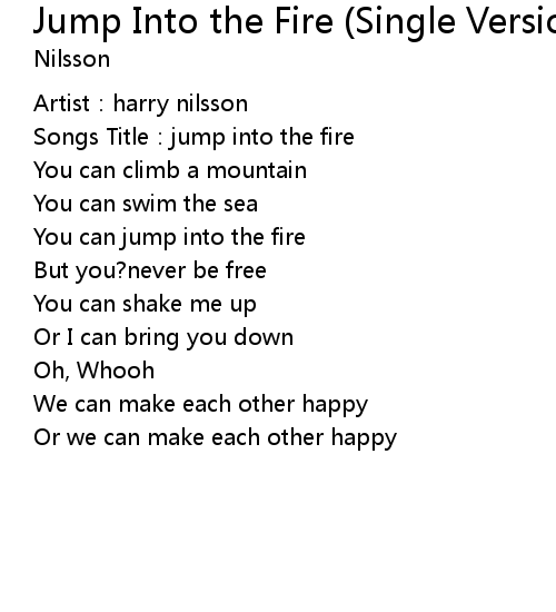 | Song | Jump Into the Fire (Single Version) - Single Version |