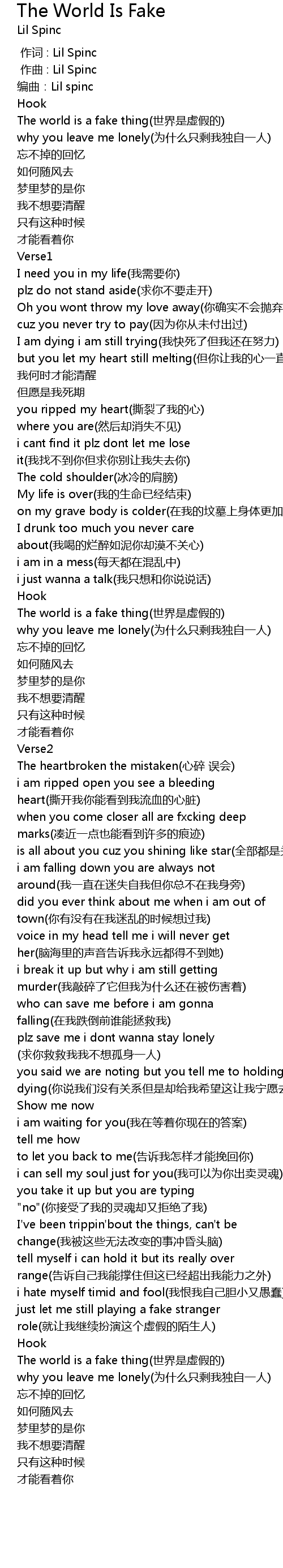 | [01:42.247] | The world is a fake thing(世界是虚假的) |