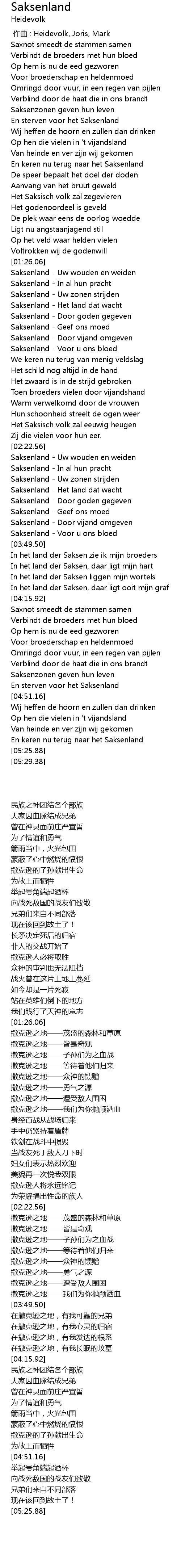 | [02:53.58] | Saksenland Voor u ons bloed |