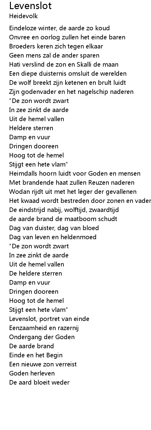 De eindstrijd nabij, wolftijd, zwaardtijd |