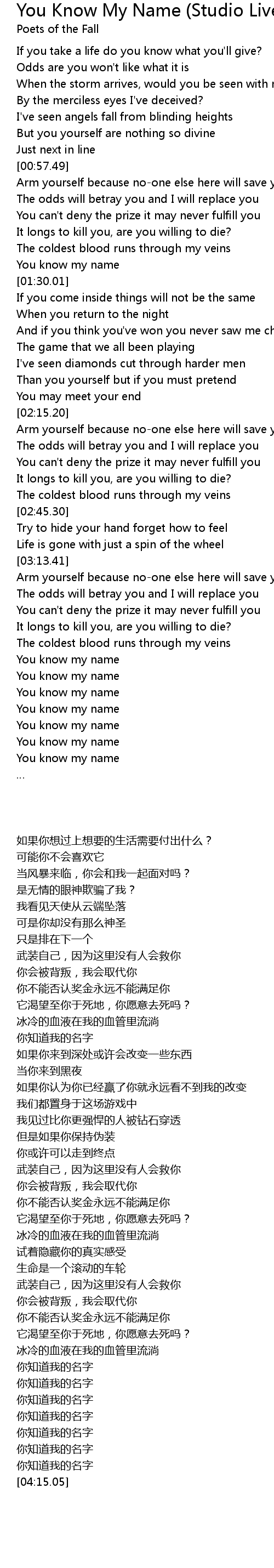 | [03:53.50] | You know my name |