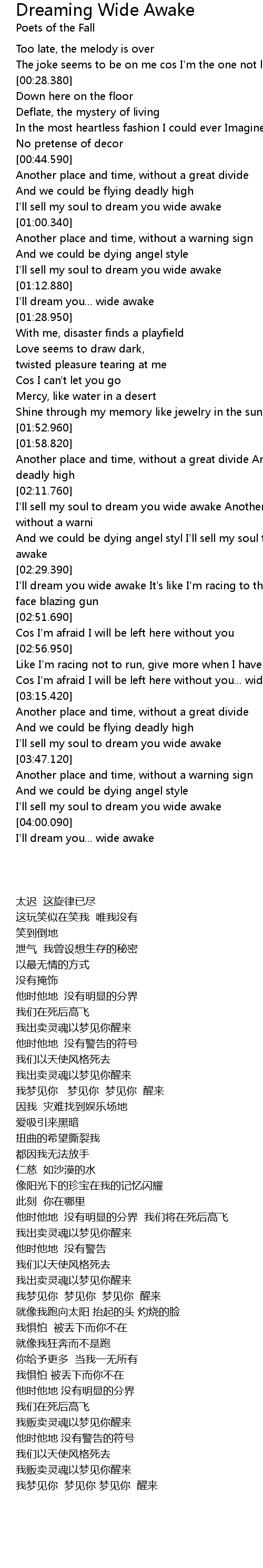 I'll sell my soul to dream you wide awake Another place and time, without a warni |