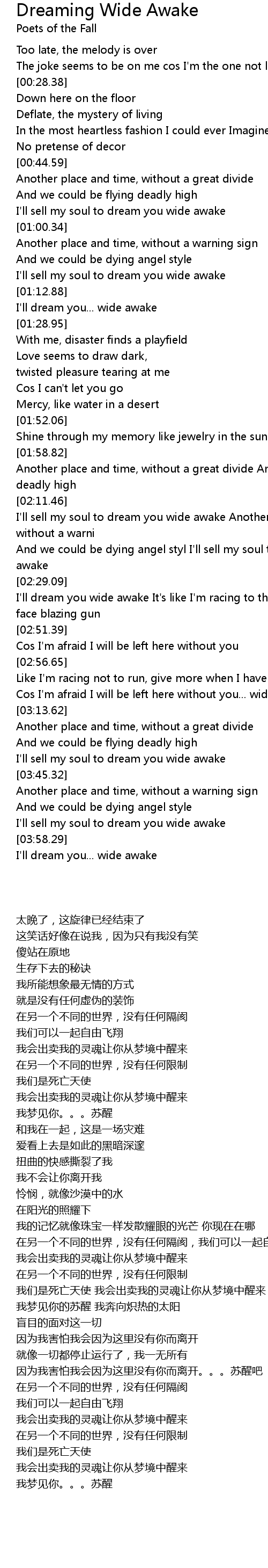 I'll sell my soul to dream you wide awake Another place and time, without a warni |