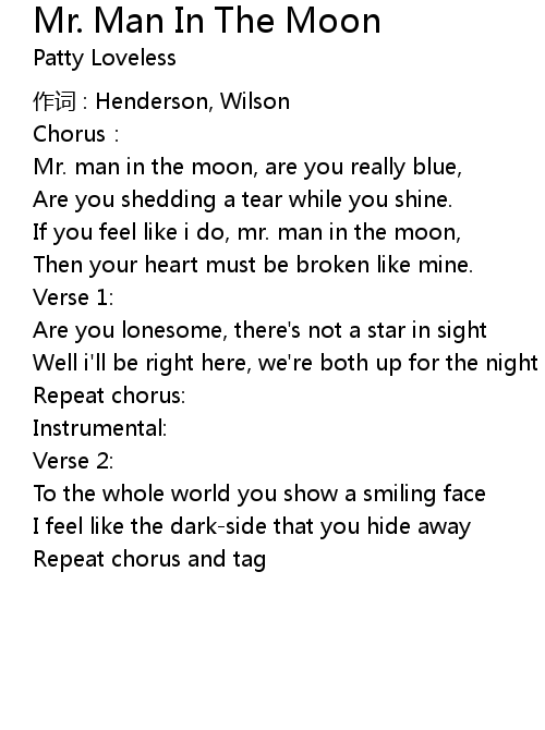 | If you feel like i do, mr. man in the moon, | |