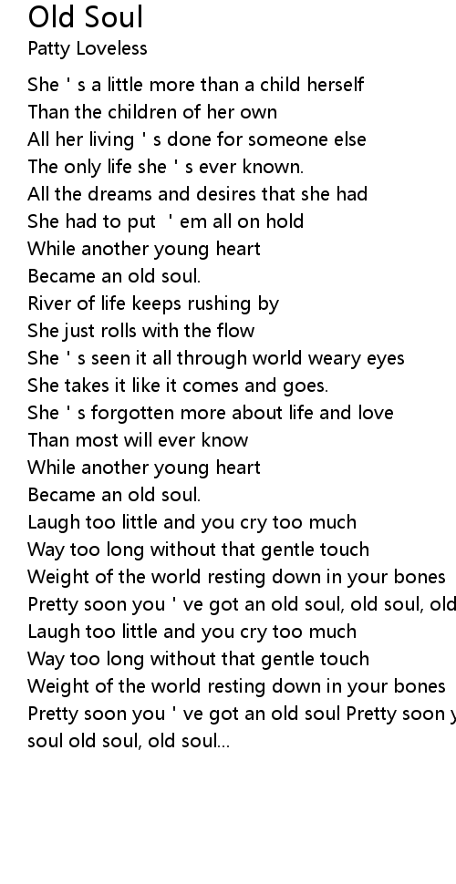 | [03:52.22] | Pretty soon you've got an old soul Pretty soon you've got an old soul old soul, old soul... |