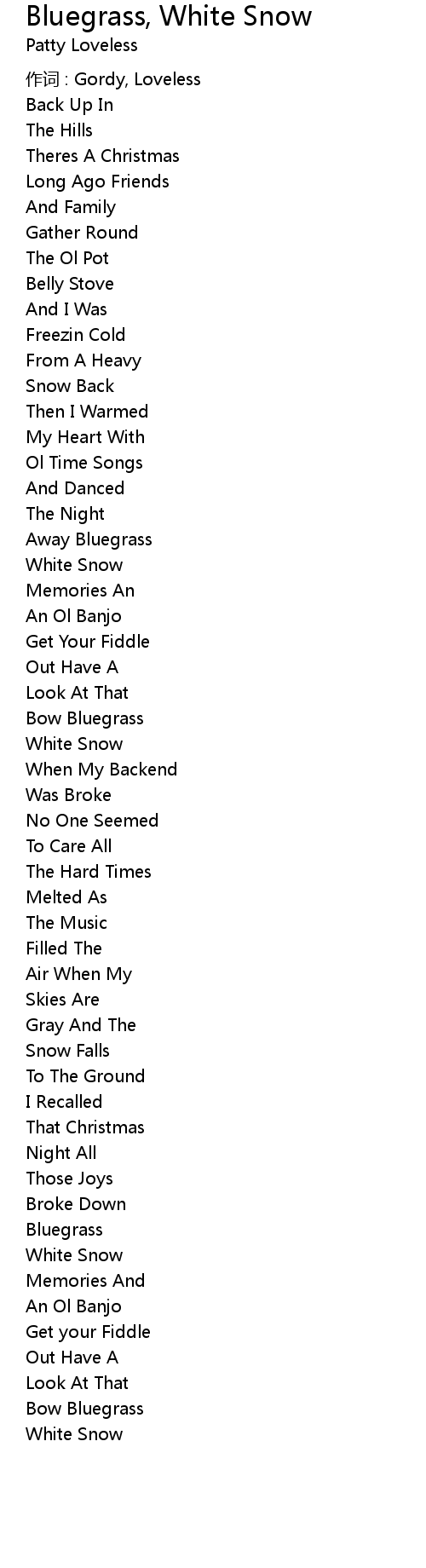 | Song | Bluegrass, White Snow |