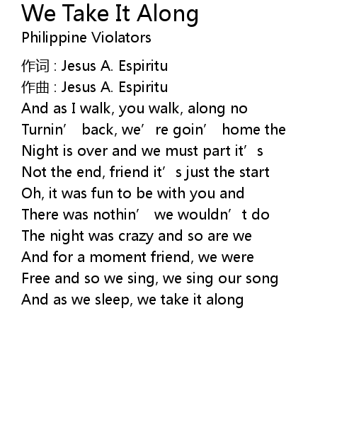 | Song | We Take It Along |