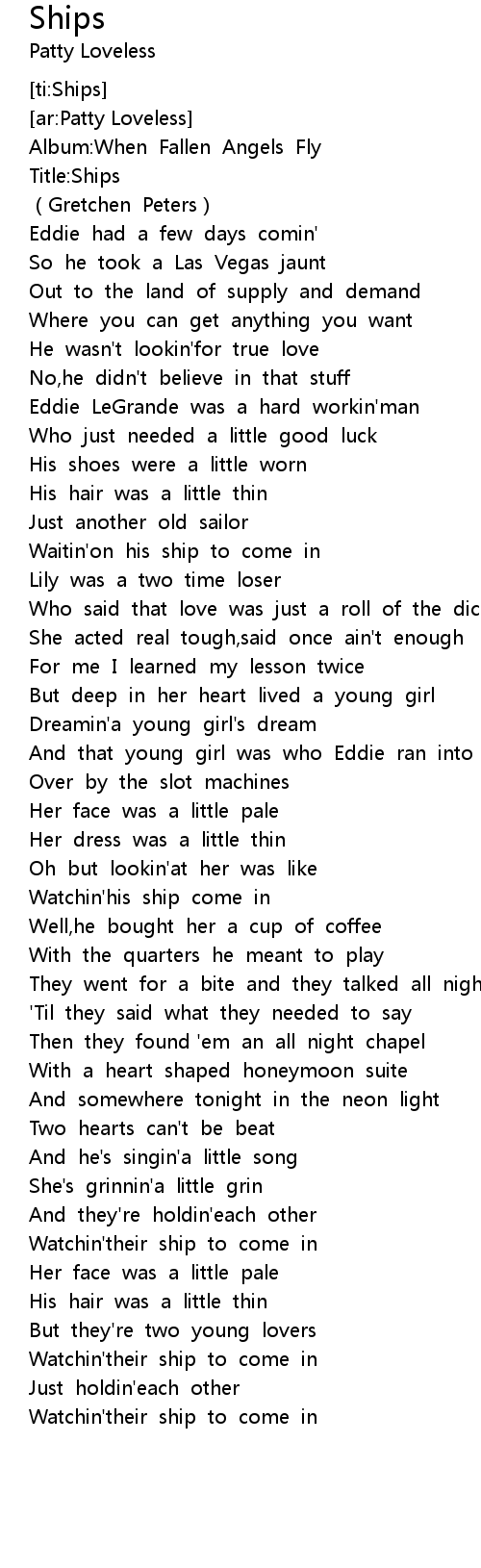 | [00:04.16] | Title: Ships |