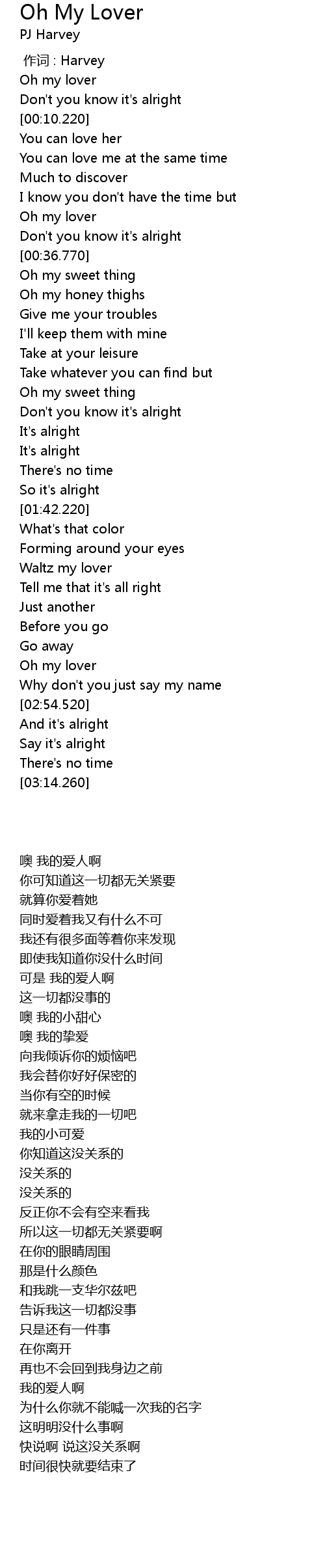 | [00:01.350] | Oh my lover |