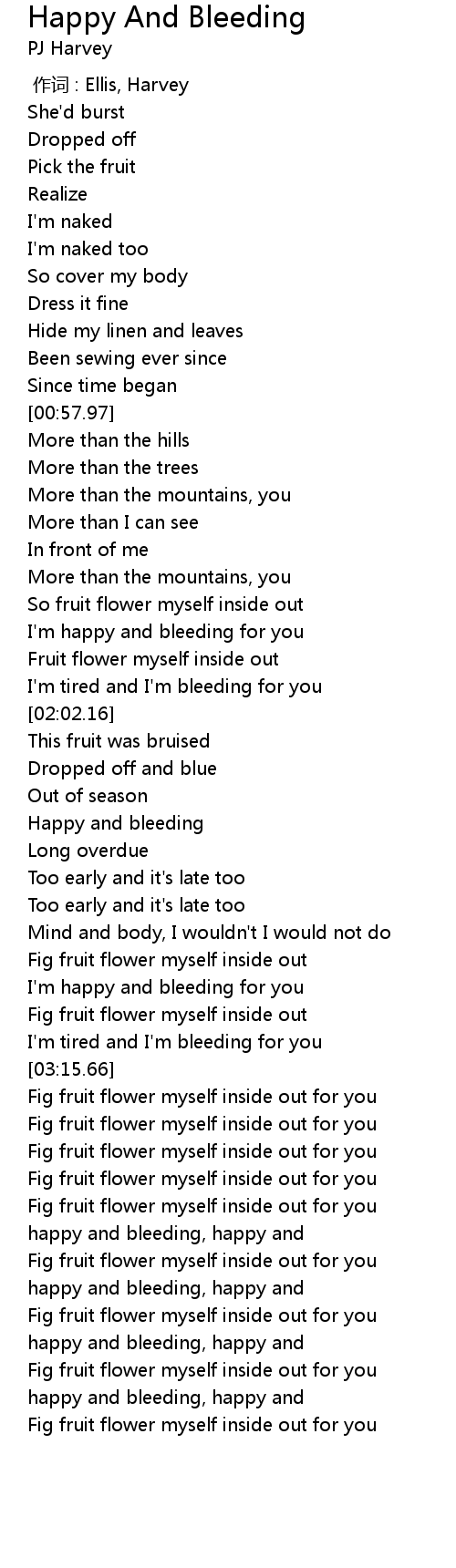 | [02:32.41] | Happy and bleeding |