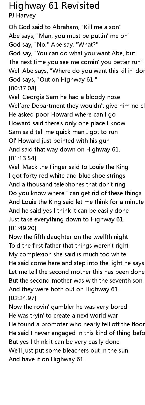 | [01:14.64] | Well Mack the Finger said to Louie the King |