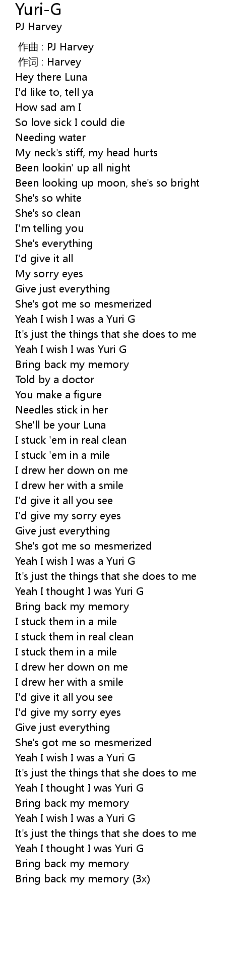 | [02:03.40] | Yeah I thought I was Yuri G |