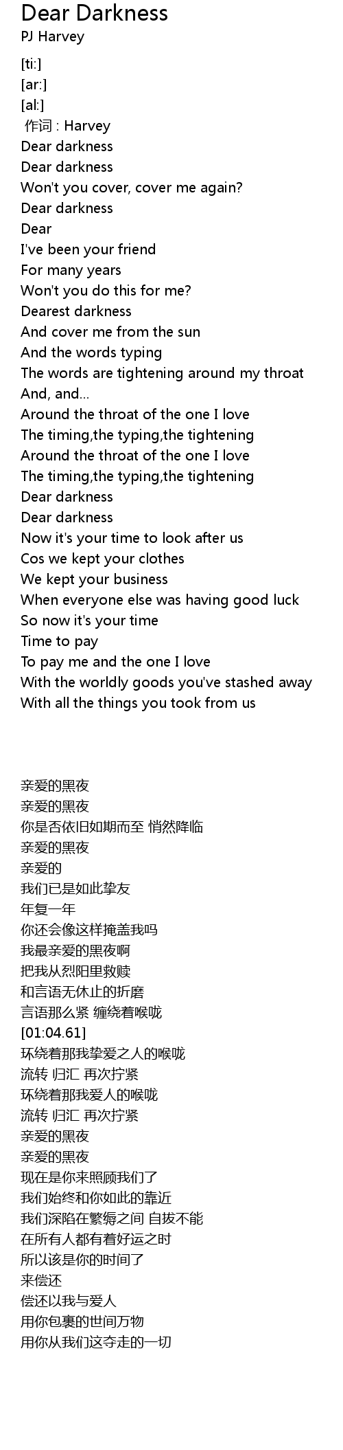 | [01:49.03] | Dear darkness |
