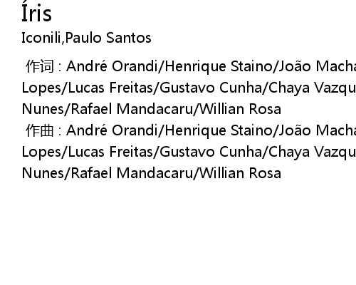[00:00.000] zuo qu : Andre Orandi Henrique Staino Jo o Machala Josi Lopes Lucas Freitas Gustavo Cunha Chaya Vazquez Mateus Bahiense Rafa Nunes Rafael Mandacaru Willian Rosa
