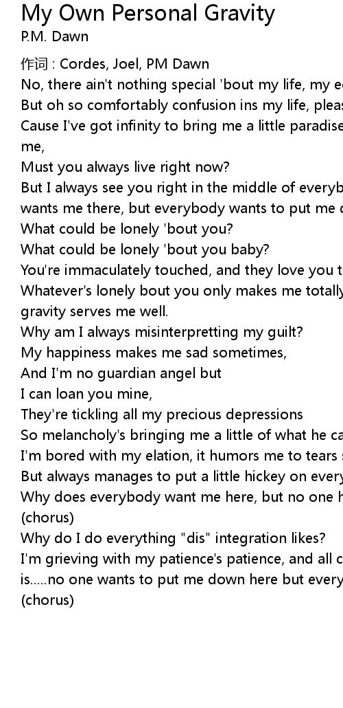 | Song | My Own Personal Gravity |