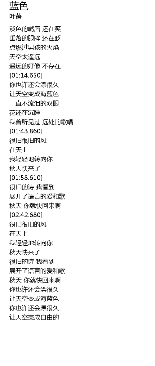 | [01:23.570] | 让天空变成海蓝色 |