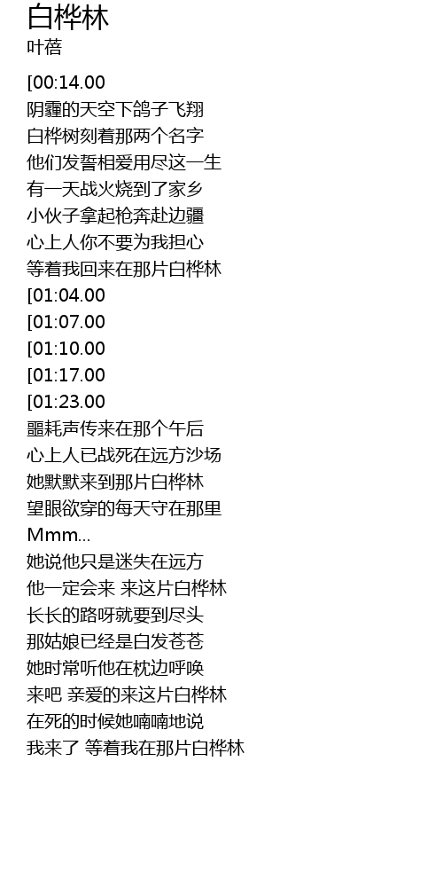 | [02:38.00][01:23.00] | 年轻的人们消逝在白桦林 |