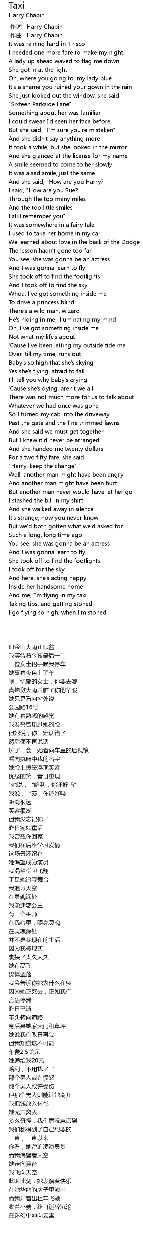 | [00:00.000] | 作词 : Harry Chapin |
