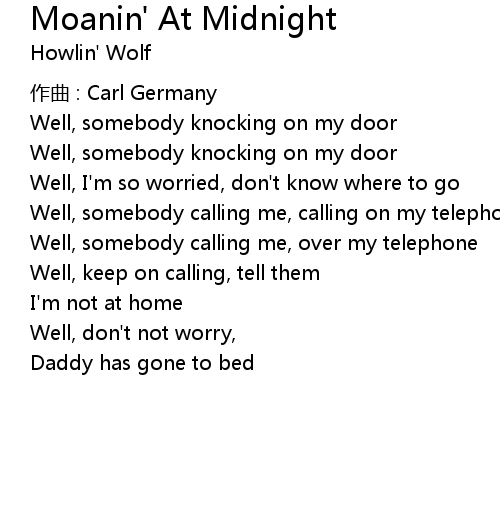 | Song | Moanin' At Midnight |