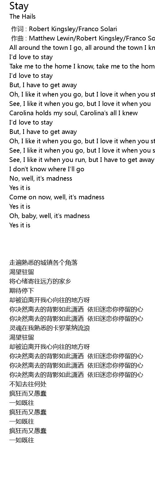 | [01:32.330] | Oh, I like it when you go, but I love it when you stay |