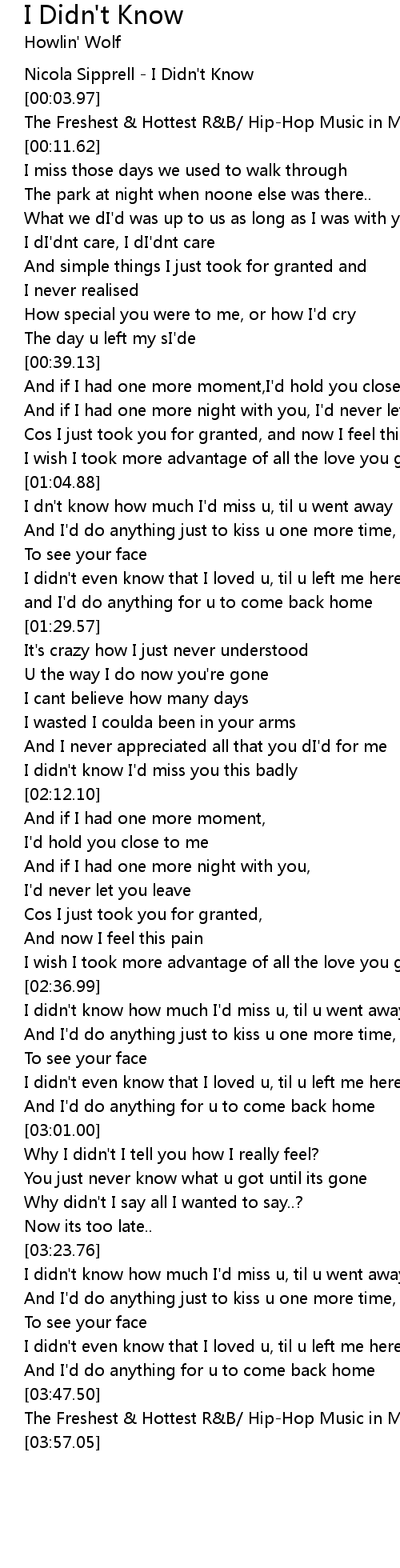 I didn't know how much I'd miss u, til u went away |