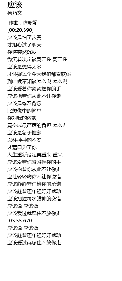 | [03:32.740] | yīng gāi shuō yīng gāi zuò |