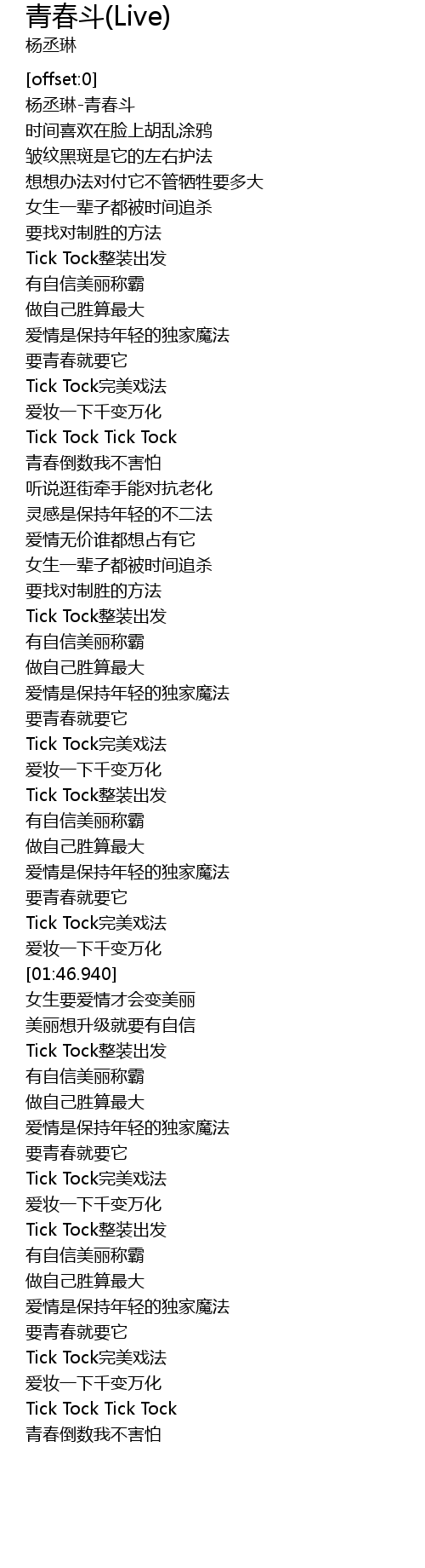 | [00:47.400] | Tick Tock wan mei xi fa |