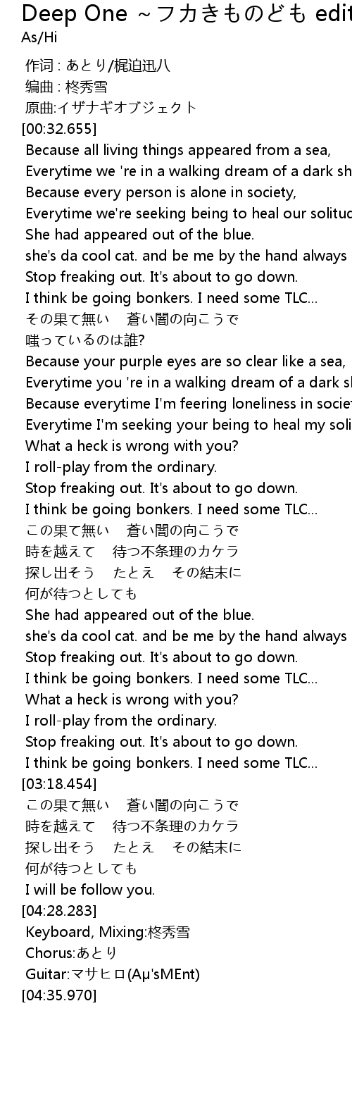 | [00:23.881] | 原曲:イザナギオブジェクト |