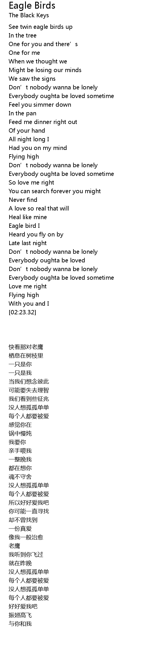 | [01:54.32] | Eagle bird I |