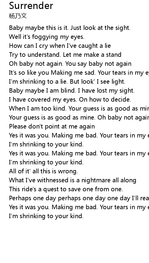 | [01:34.55] | It's so like you Making me sad. Your tears in my eyes. |