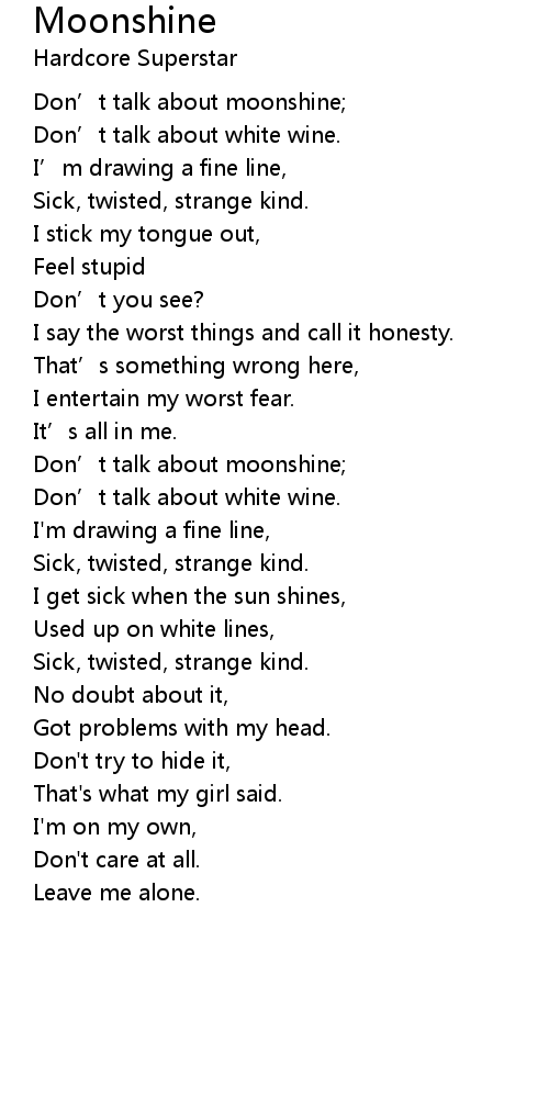 | Don’t talk about moonshine; | |