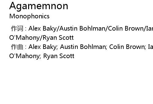 | [00:00.000] | 作曲 : Alex Baky; Austin Bohlman; Colin Brown; Ian McDonald; Myles O'Mahony; Ryan Scott |