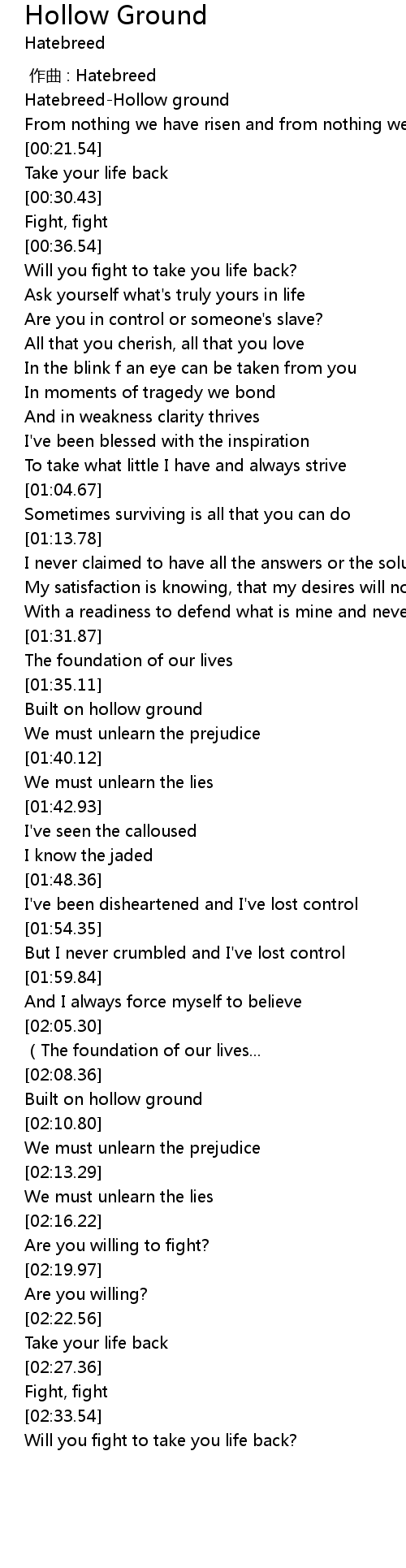 | [00:00.00] | zuò qǔ : Hatebreed |