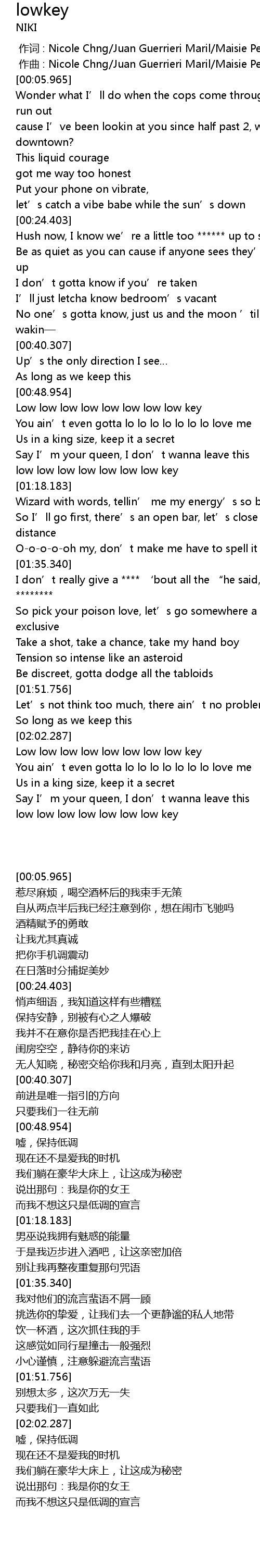 | [02:02.465] | Low low low low low low low low key |